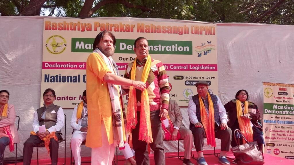 On the occasion of Constitution Day, the Rashtriya Patrakar Mahasangha ( RPM) staged a massive protest and public meeting at Jantar Mantar, demanding that the media be constitutionally recognized as the Fourth Pillar of Democracy through central legislation. A memorandum addressing this demand was submitted to the President and the Prime Minister of India.